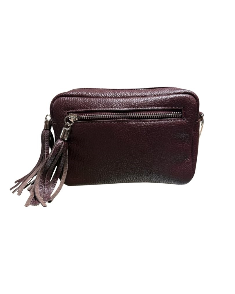 El acento sofisticado que ilumina cualquier look. Esta bandolera granate de Velia Leather combina piel graneada, borlas laterales y bolsillo exterior con cremallera para lo imprescindible. La correa regulable permite llevarla al hombro o cruzada, manteniendo las manos libres. Ligera, resistente y perfecta de lunes a domingo: vaqueros, sastrería o vestido midi.