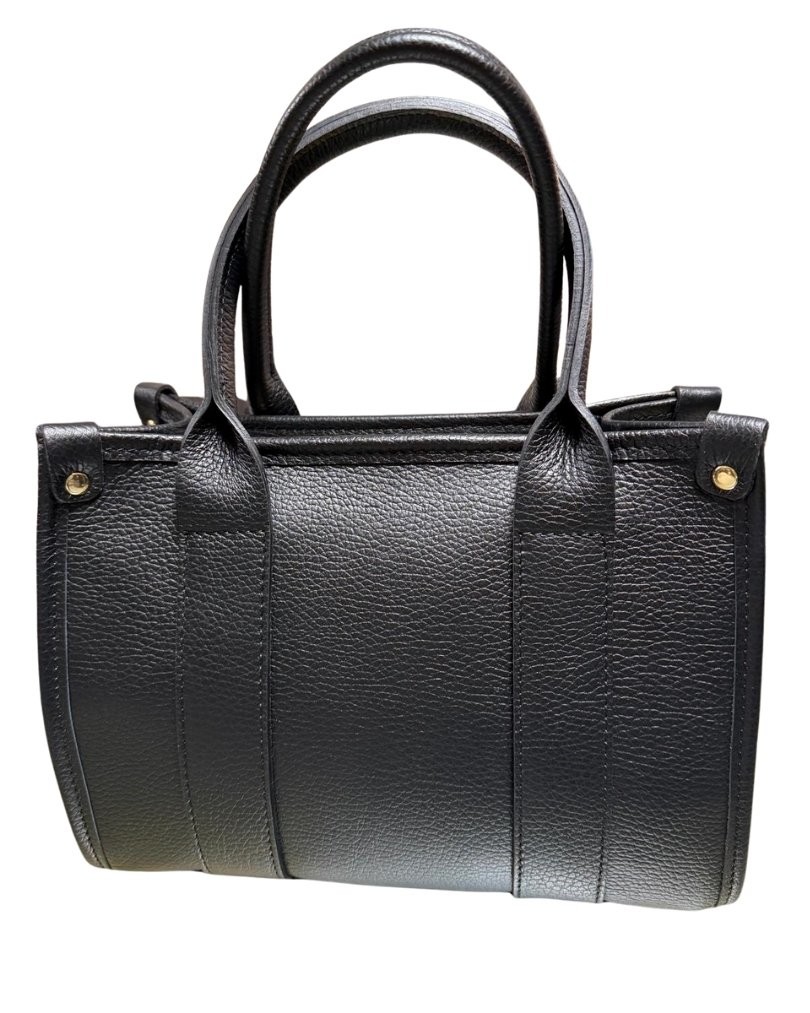 El todoterreno elegante. Este bolso de Velia en piel graneada negra combina asas cortas cómodas con bandolera regulable/desmontable para llevarlo al hombro o cruzado. Estructura tipo mini-tote con línea limpia y herrajes metálicos sutiles. Ligero pero funcional: perfecto para móvil, cartera, gafas y esenciales. Del traje al denim, suma clase sin esfuerzo.