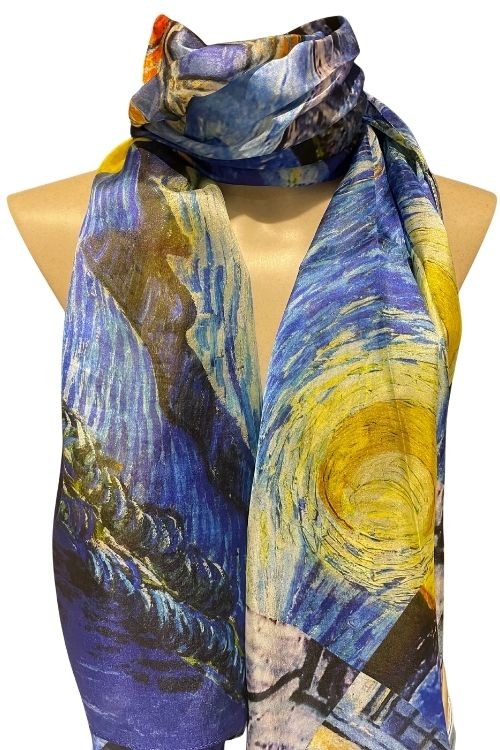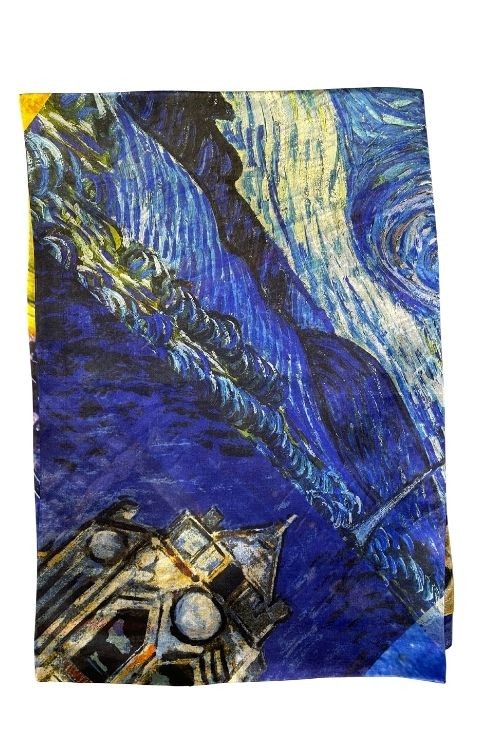Arte que se lleva. El fular Paisaje de Velia en seda natural tiene caída fluida y brillo sutil que eleva cualquier look. Su estampado pictórico aporta color y movimiento: llévalo al cuello, en el cabello, como cinturón o anudado al bolso. Ligero, suave y perfecto todo el año.