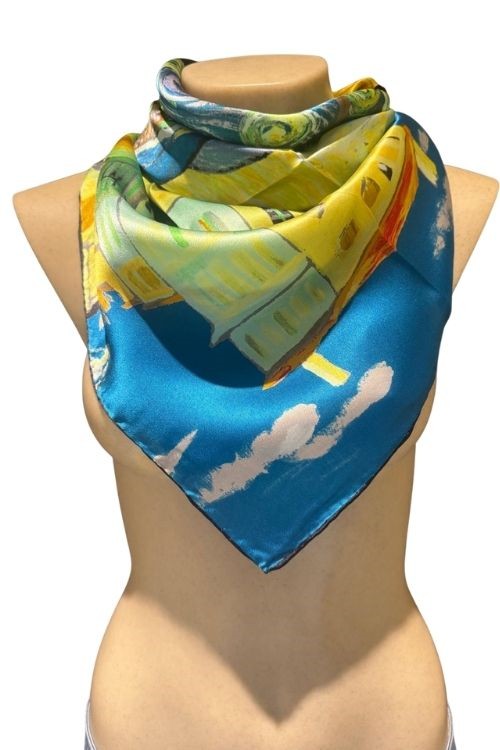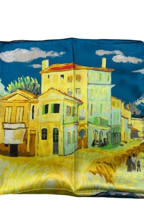 Sé el primero en valorar “Pañuelo Seda «La casa amarilla» 90X90”