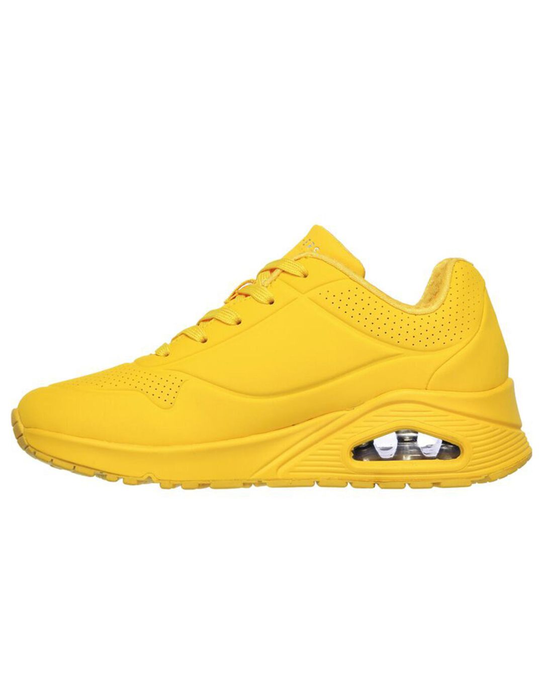 La comodidad de un modelo clásico con cámara de aire se actualiza con la Skechers Street Uno – Stand on Air. Moderno modelo con cordones con parte superior de piel sintética lisa y perforada, una plantilla SKECHERS Air Cooled Memory Foam y media suela con cámara de aire visible Skech-Air.