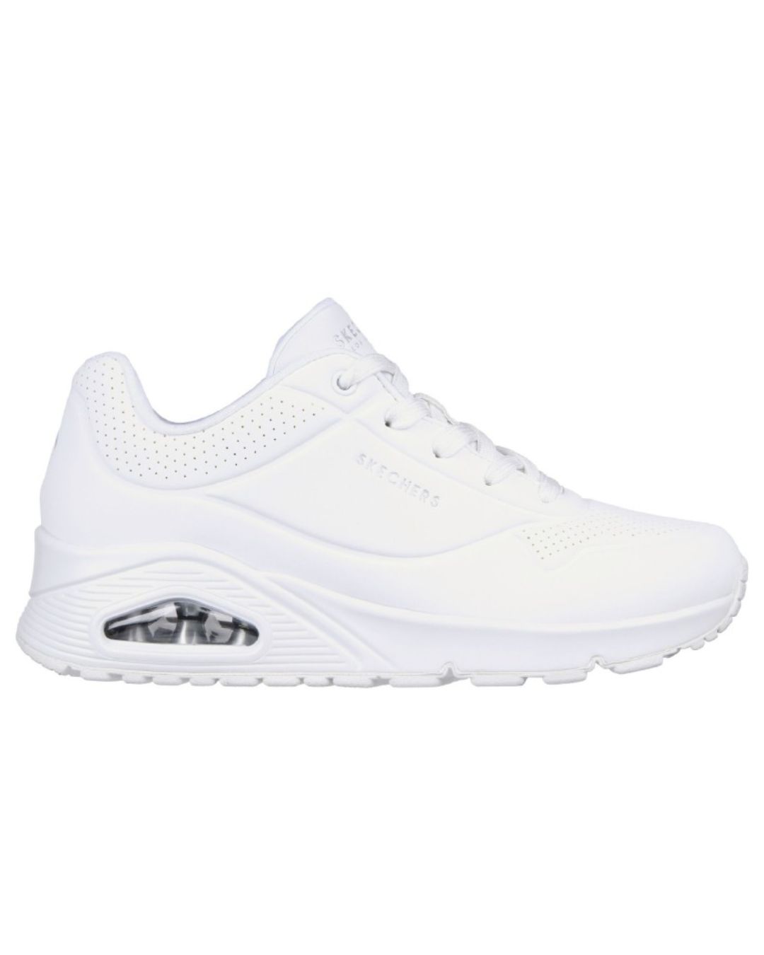 La comodidad clásica con cámara de aire se encuentra con una nueva actualización en la Skechers Street Street Uno – Stand on Air. Moderna zapatilla con cordones con parte superior de piel sintética lisa y perforada, una plantilla SKECHERS Air Cooled Memory Foam y media suela con cámara de aire visible Skech-Air.